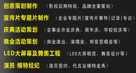 智慧力——創(chuàng)作團(tuán)隊   創(chuàng)意總監(jiān)——創(chuàng)意來自生活,高于生活    美術(shù)指導(dǎo)——身手敏捷,思想敏銳,具有獨特的美術(shù)嗅覺   資深策劃——思維縝密而又膽識過人,常常給人意外之喜   經(jīng)典影視.品牌傳播,采用國際化的Team作業(yè)模式——